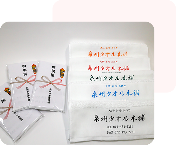 大阪府泉佐野市の「泉州タオル本舗」では企業様のご挨拶まわり・粗品タオル・ノベルティ・販促品として作製される名入れタオル、伝統ある「泉州タオル」をオンライン販売しております。