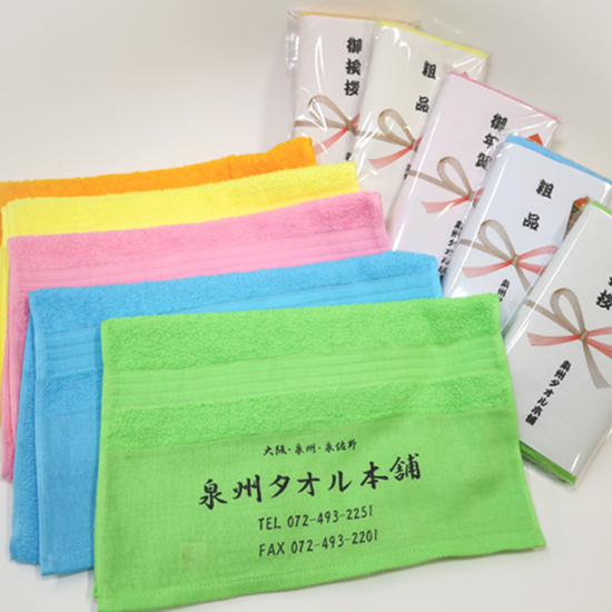 大阪府泉佐野市の「泉州タオル本舗」では企業様のご挨拶まわり・粗品タオル・ノベルティ・販促品として作成される名入れタオル、伝統ある泉州タオルをオンライン販売しております。。